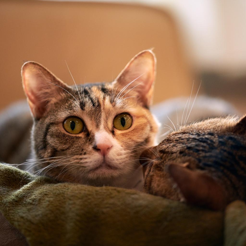 Wallpaper Small cats Maine Coon somewhere watching lying on the bed