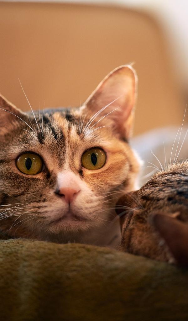 Wallpaper Two gray cats are lying on the bed.