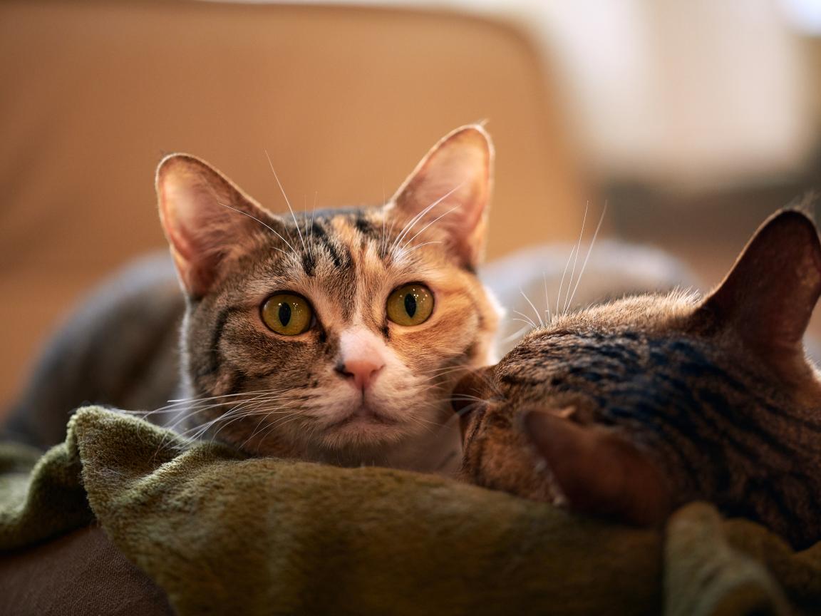 Wallpaper Two gray cats are lying on the bed.
