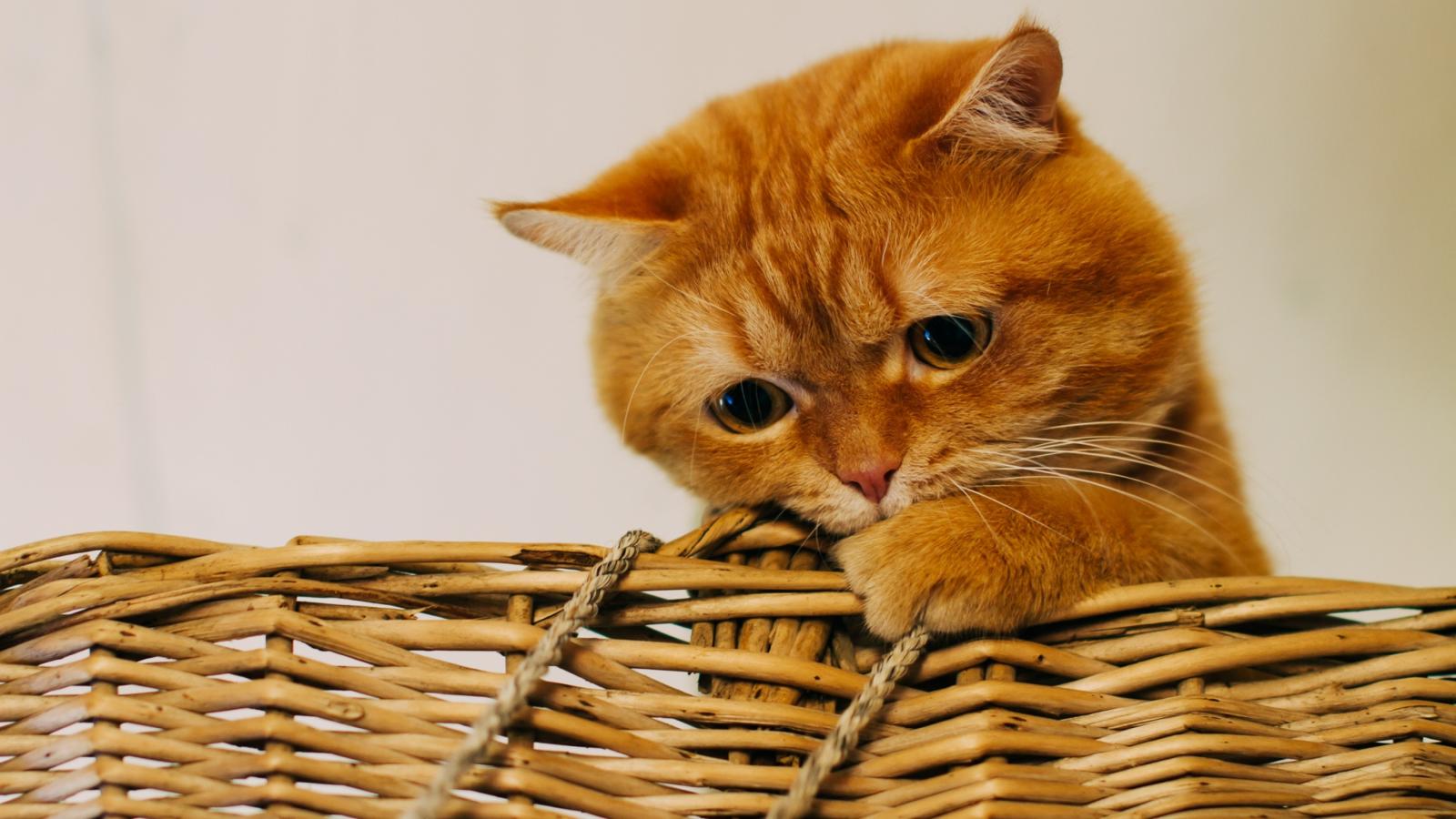 Wallpaper Red funny cat sitting in a wicker basket