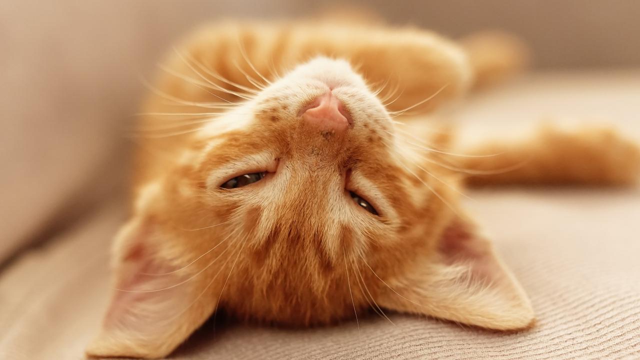 Wallpaper Ginger kitten napping on the bed