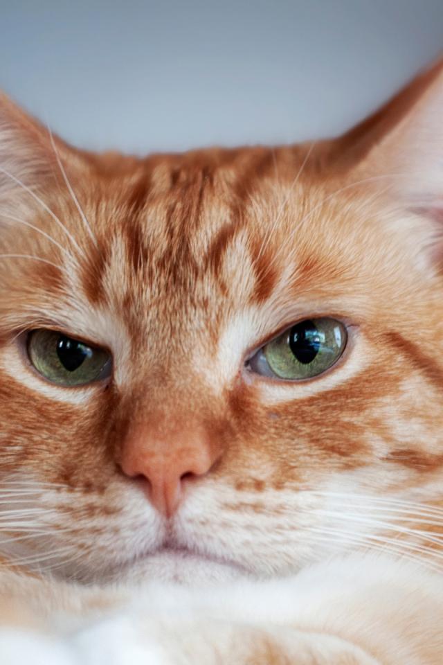 Wallpaper The face of a beautiful ginger cat with green eyes