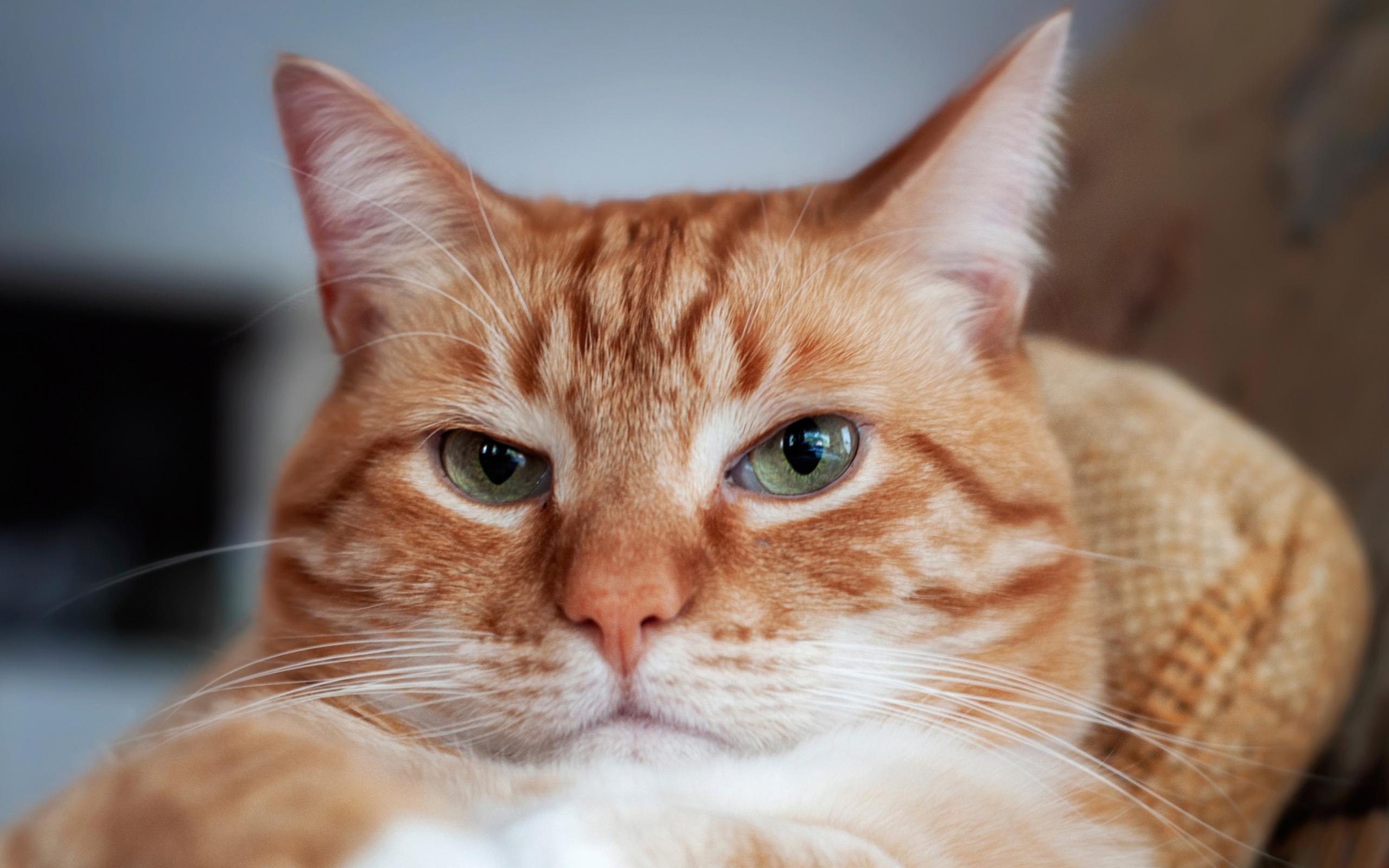Wallpaper The face of a beautiful ginger cat with green eyes