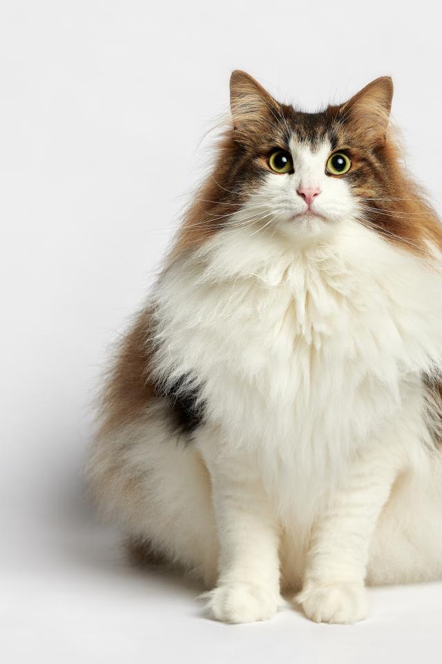 Wallpaper Thick fluffy thoroughbred cat on a white background