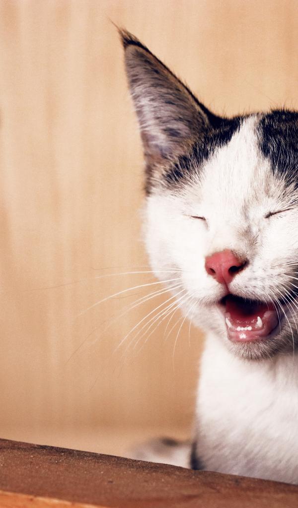 Wallpaper Funny black and white cat smiling