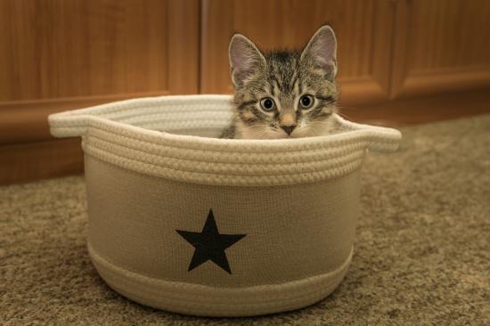» Wallpaper Little gray kitten on a couch