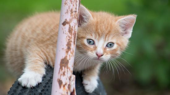 Wallpaper Ginger kitten sitting on a wheel