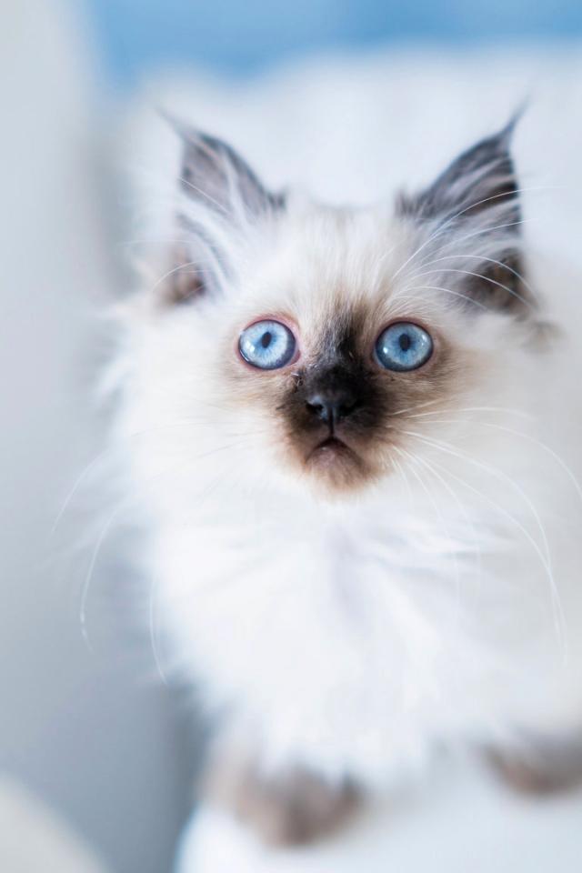 Wallpaper Blue-eyed thoroughbred fluffy kitten