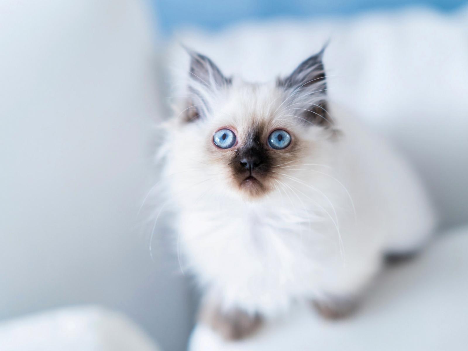 Wallpaper Blue-eyed thoroughbred fluffy kitten