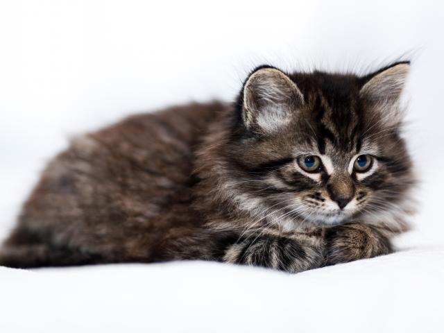 Wallpaper Fluffy gray Maine Coon kitten on a white background