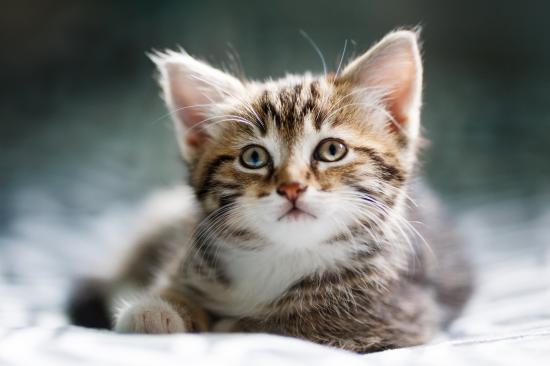 Wallpaper A large dachshund lies with a small gray kitten on a white background