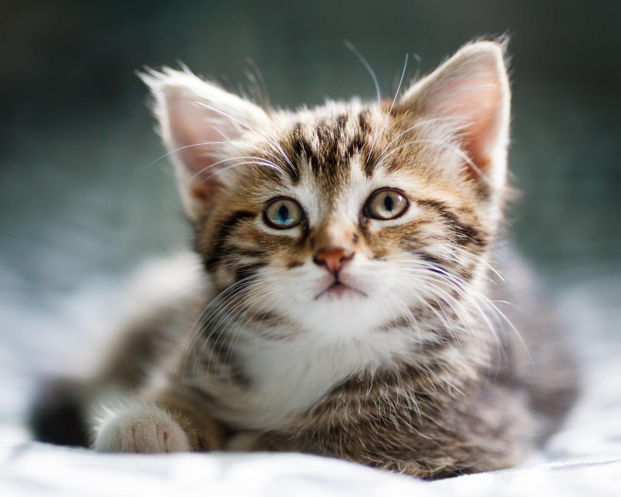 Wallpaper A large dachshund lies with a small gray kitten on a white background