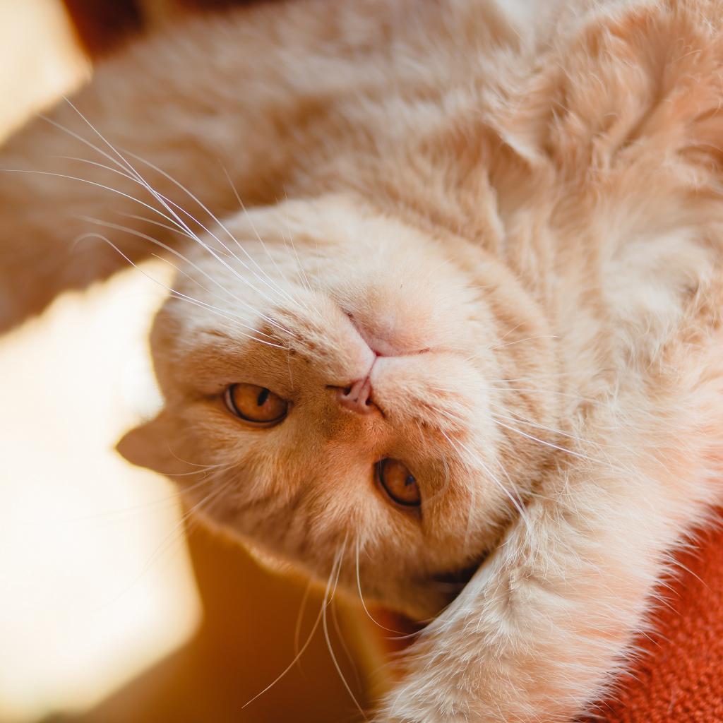 Wallpaper Beautiful red cat lies paws up