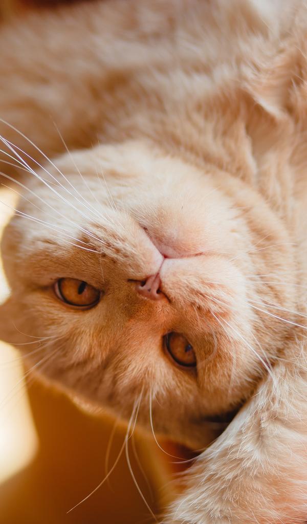 Wallpaper Beautiful red cat lies paws up