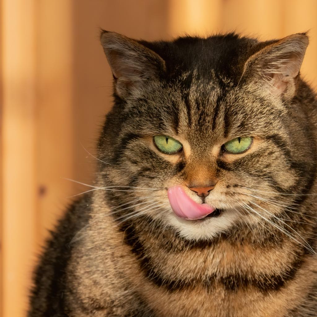 Wallpaper Big gray cat with protruding tongue