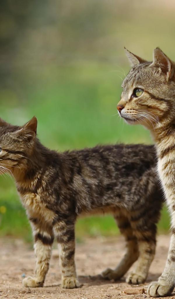 Wallpaper Big gray cat with a kitten on the street