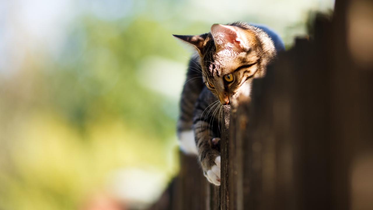 Wallpaper Gray and white cat at the fence