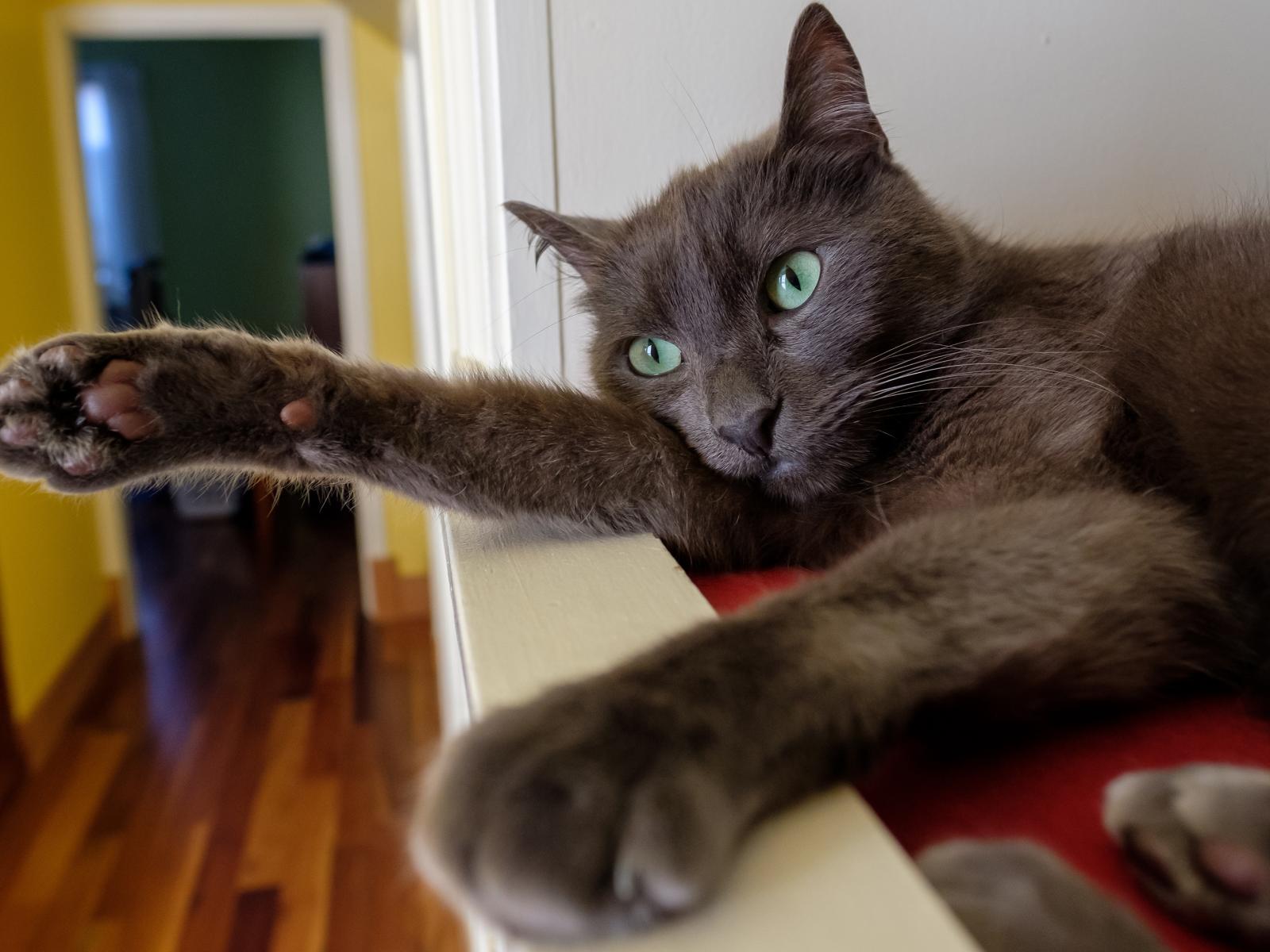 Wallpaper Big gray cat with green eyes