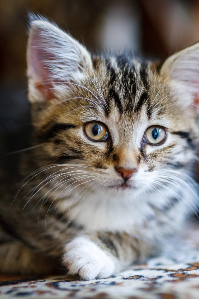 Wallpaper Beautiful gray kitten lies on a sofa