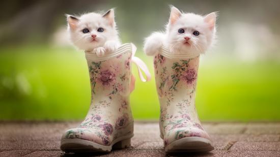 Wallpaper Two little cute kittens are sitting in rubber boots.