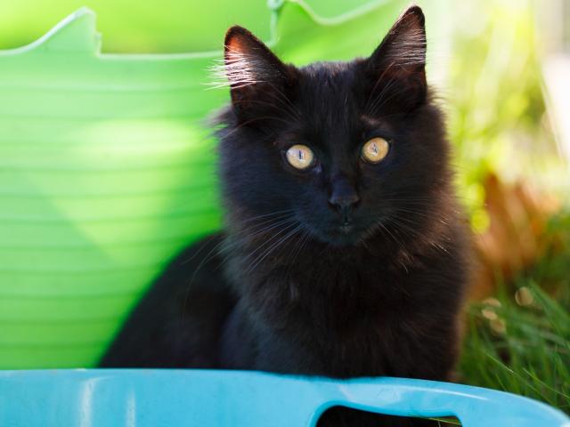 Wallpaper Beautiful fluffy black cat with yellow eyes
