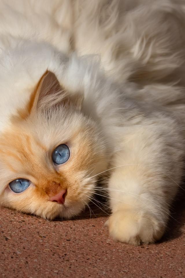 Wallpaper Beautiful blue-eyed thoroughbred cat lies on the floor