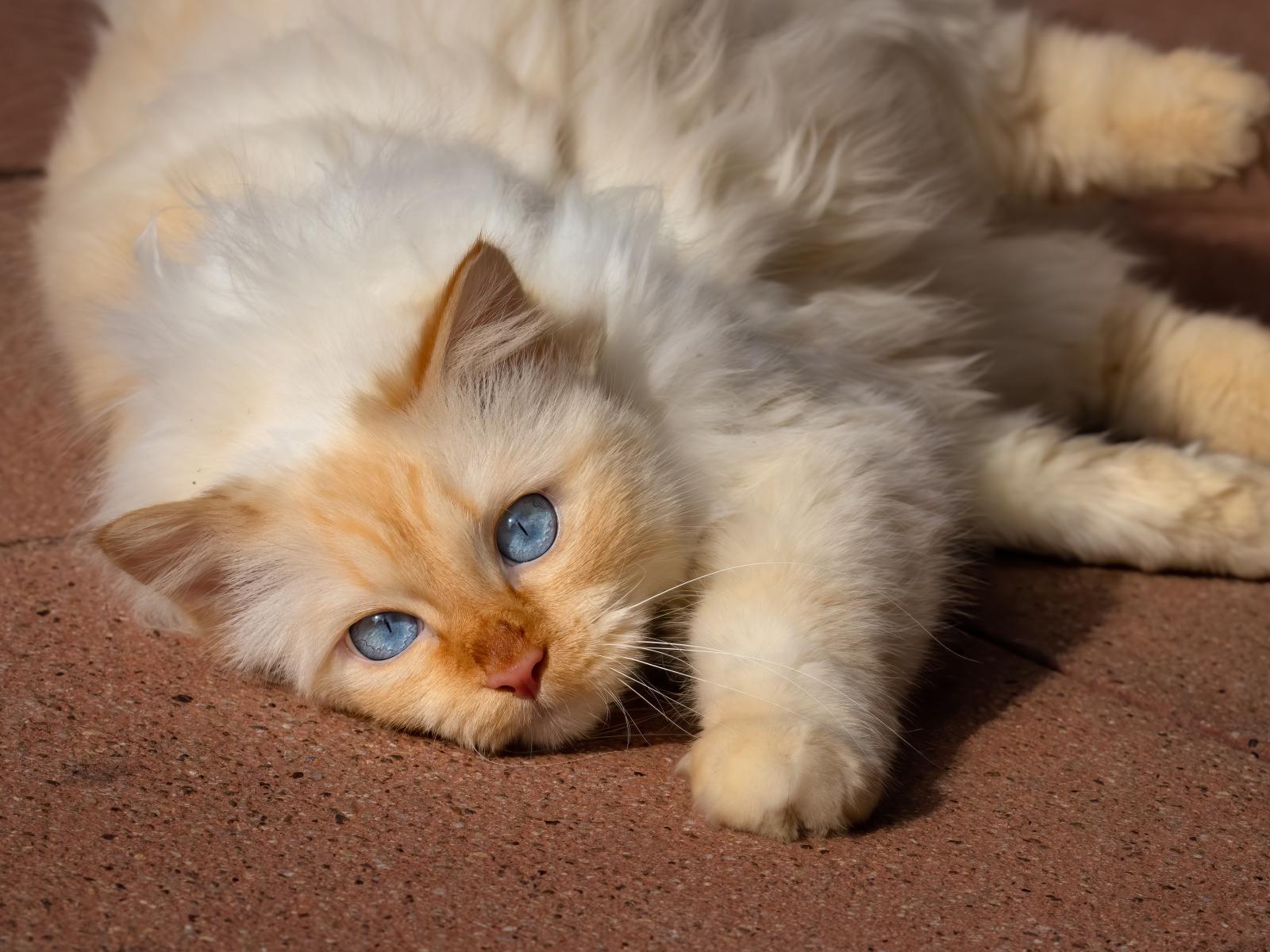 Wallpaper Beautiful blue-eyed thoroughbred cat lies on the floor