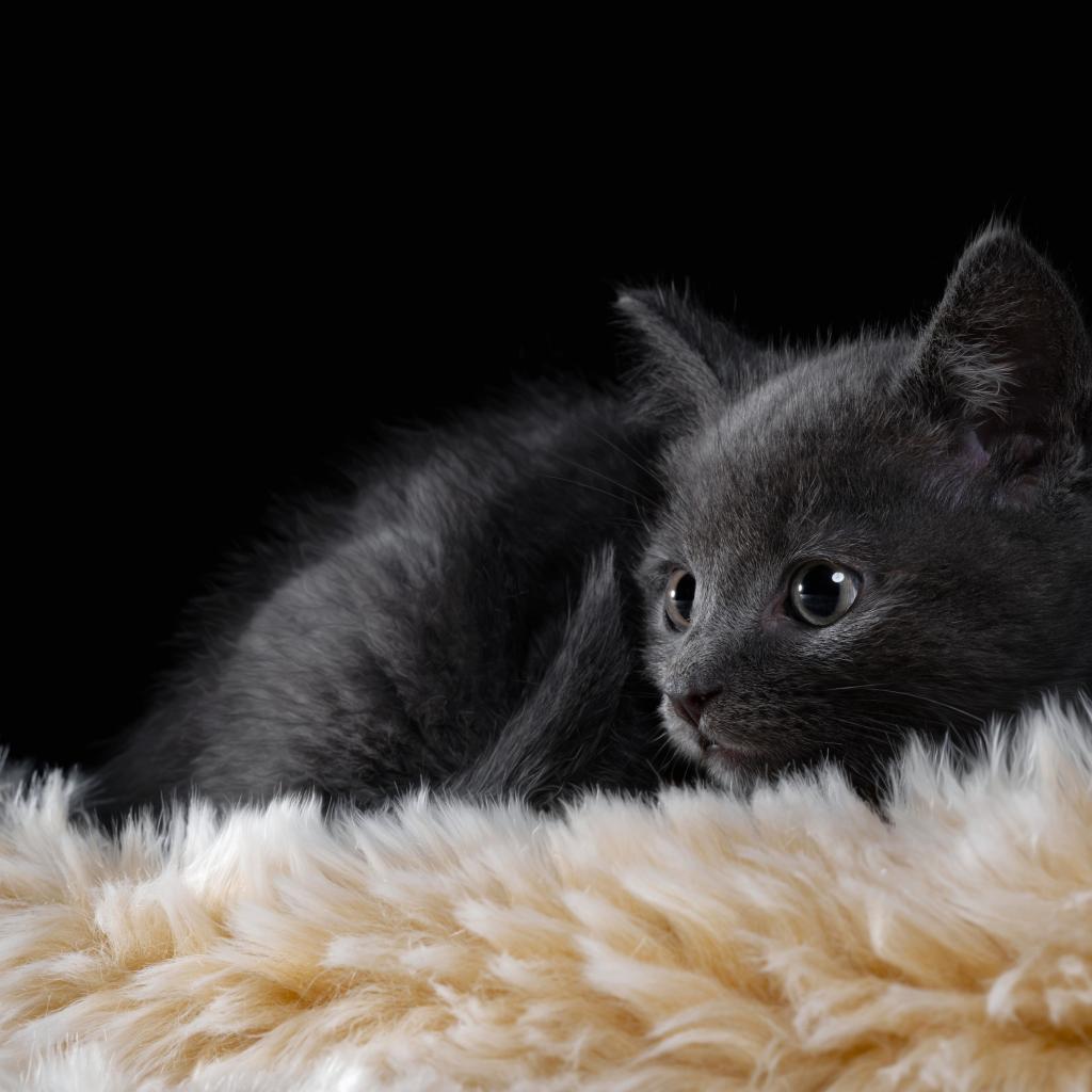Wallpaper Little british kitten lies on a fur litter