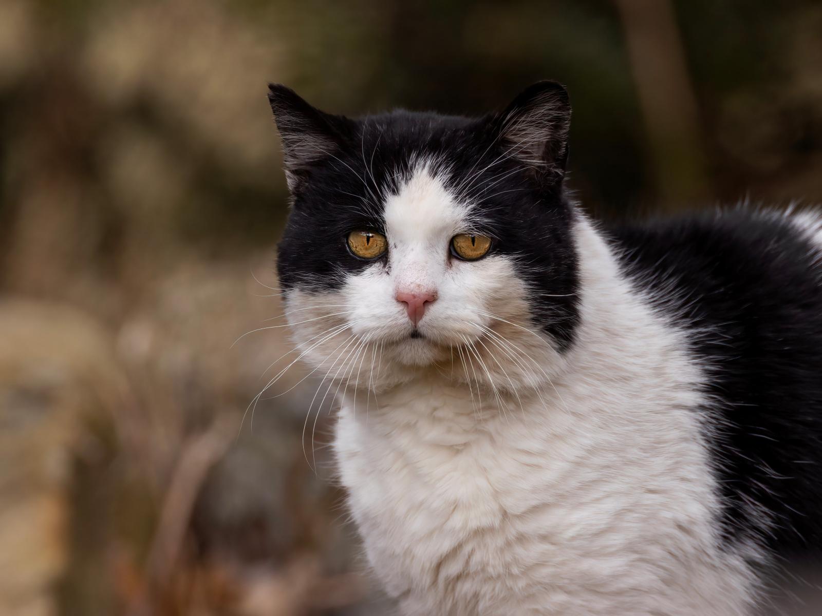 Wallpaper Big face of a black and white cat