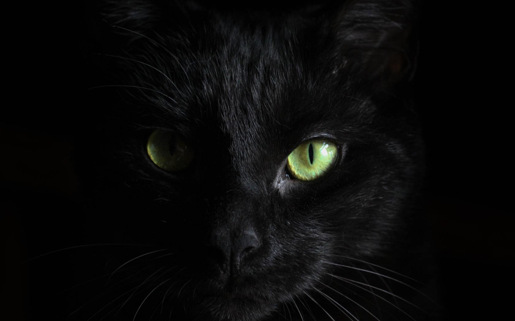 Wallpaper The face of a black cat with green eyes