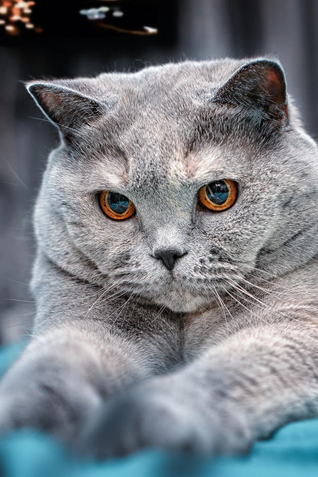 Wallpaper Ash British cat with brown eyes on the bed