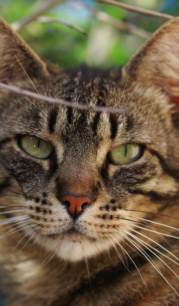 Wallpaper Gray cat in branches close up
