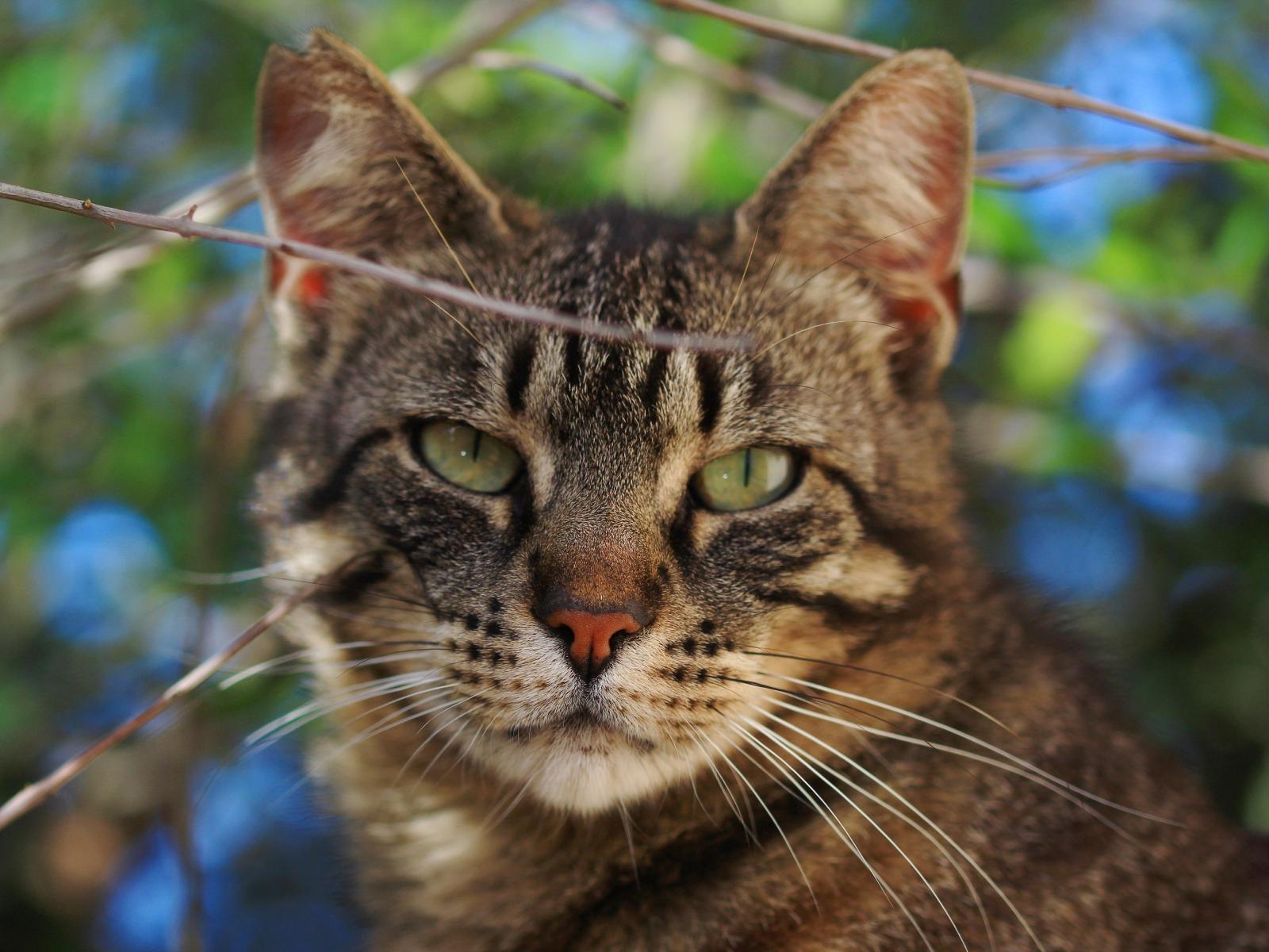» Wallpaper Gray cat in branches close up