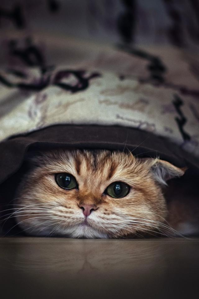 Wallpaper Purebred green-eyed cat is hiding under the bed