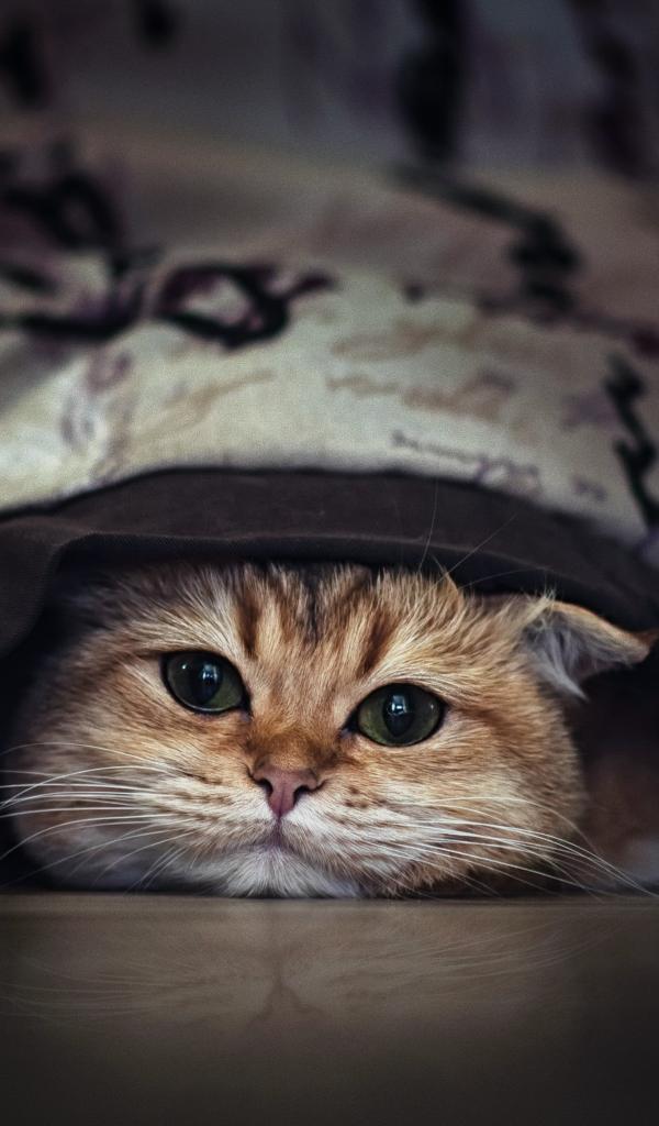 Wallpaper Purebred green-eyed cat is hiding under the bed