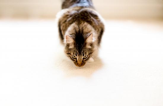 Wallpaper Gray fluffy cat with Easter eggs on a white background
