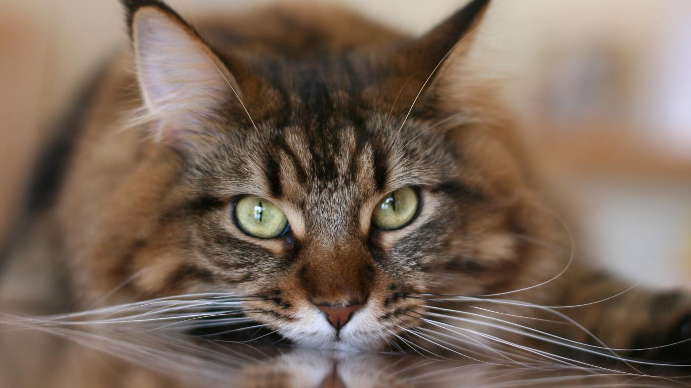 Wallpaper Big gray cat with white mustache closeup