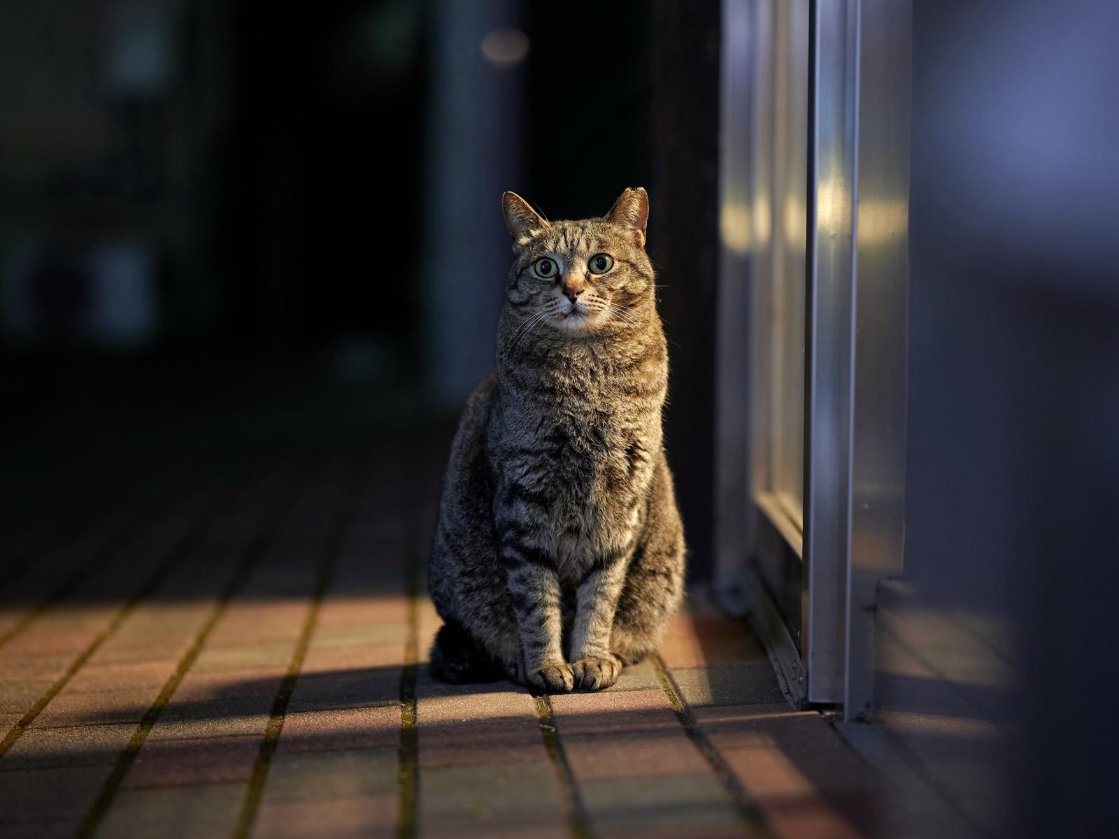 Wallpaper Gray domestic cat is sitting at the door