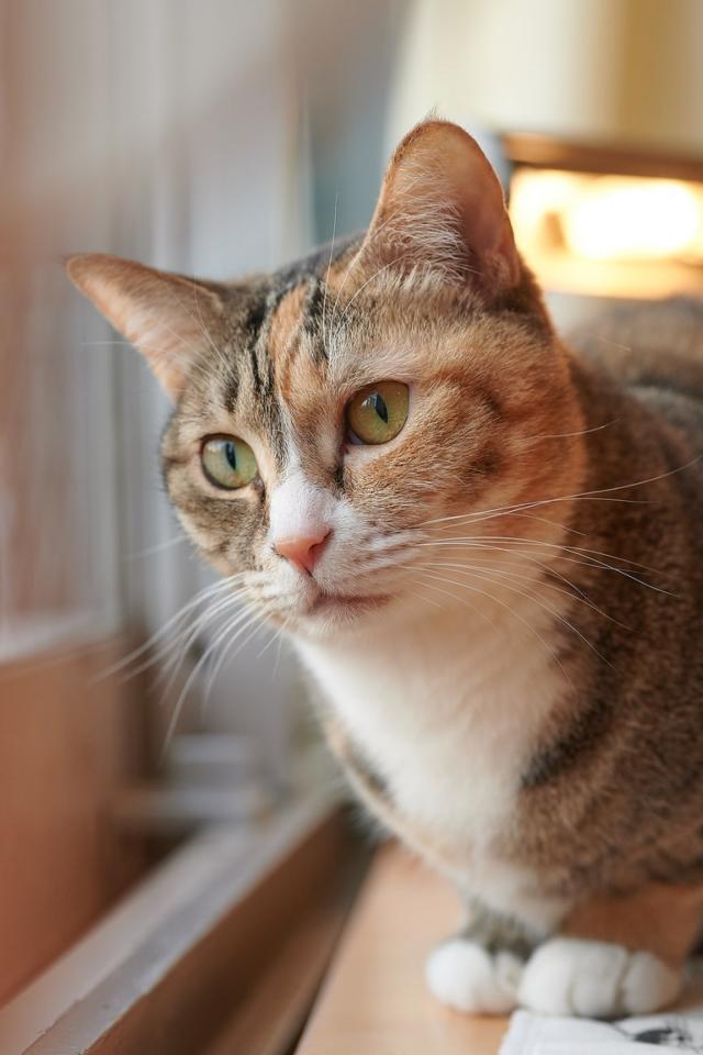 Wallpaper Domestic cat looks out the window