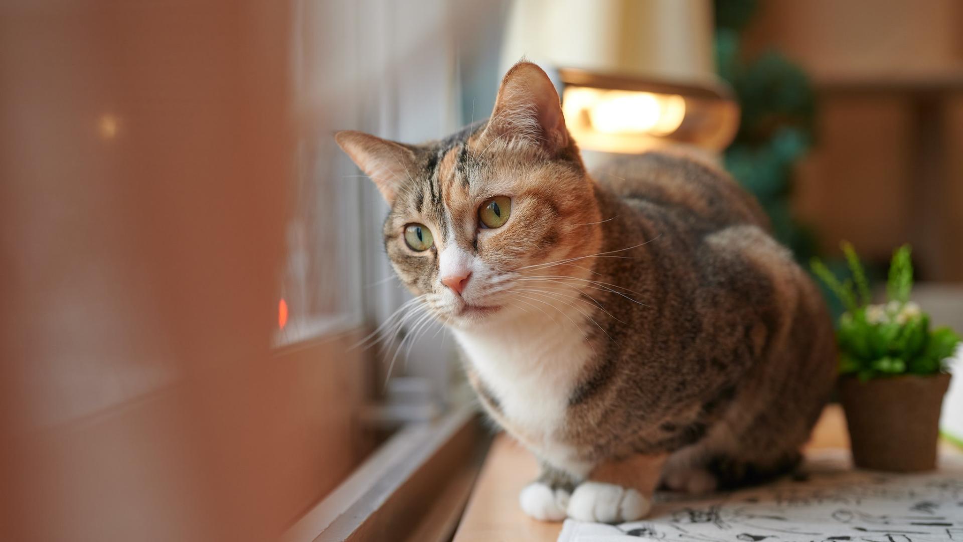 Wallpaper Domestic cat looks out the window
