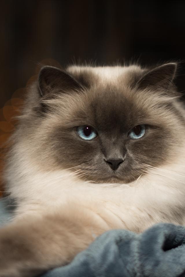 Wallpaper Purebred fluffy blue-eyed cat lies on the bed