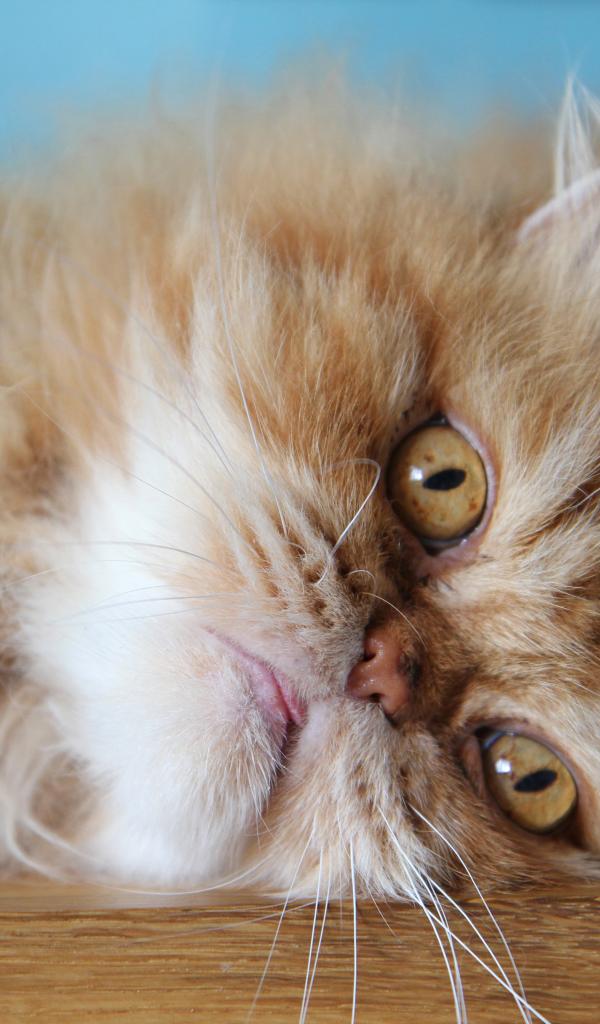 Wallpaper Fluffy red Persian cat lies on the floor
