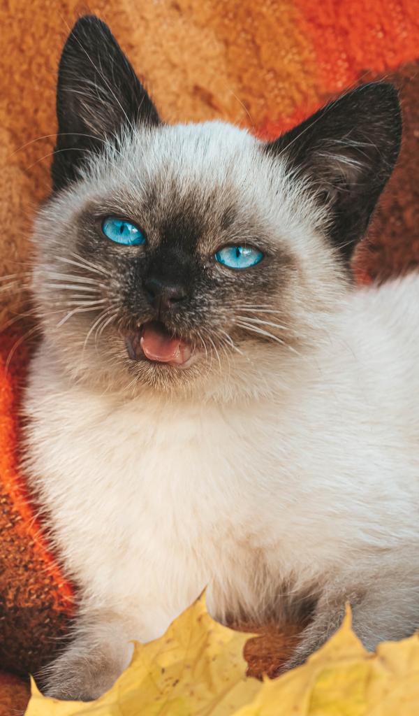 Wallpaper Little blue-eyed Siamese kitten lies on a blanket