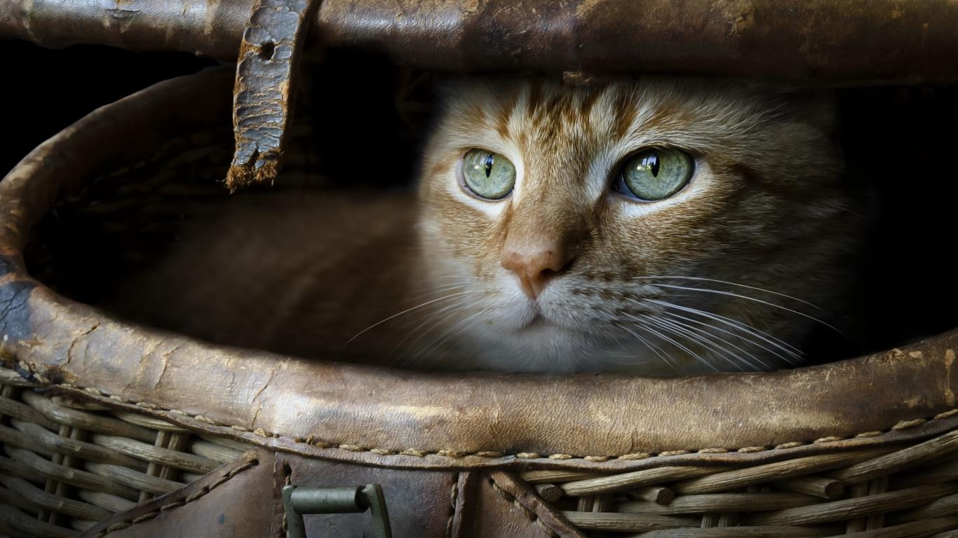 Wallpaper Green-eyed ginger cat in a basket
