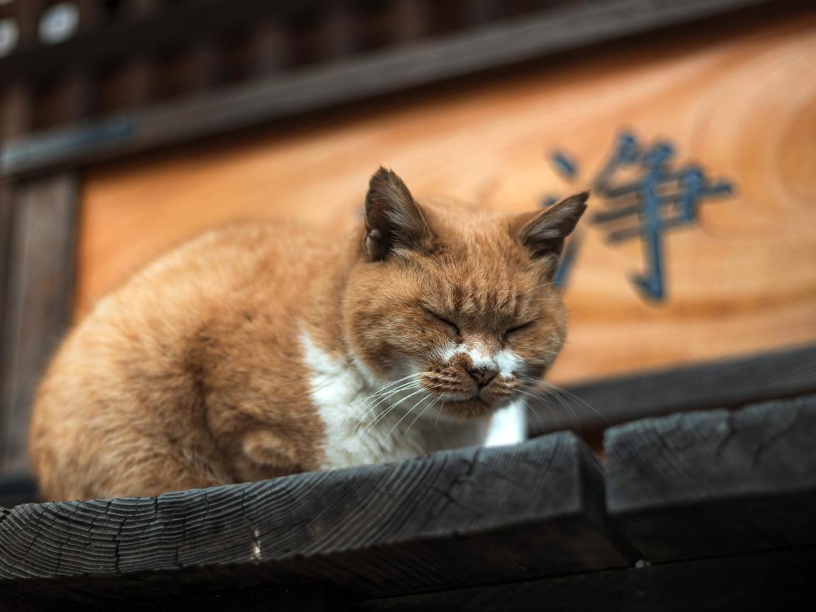 Wallpaper Dozing ginger cat on a wooden doorstep
