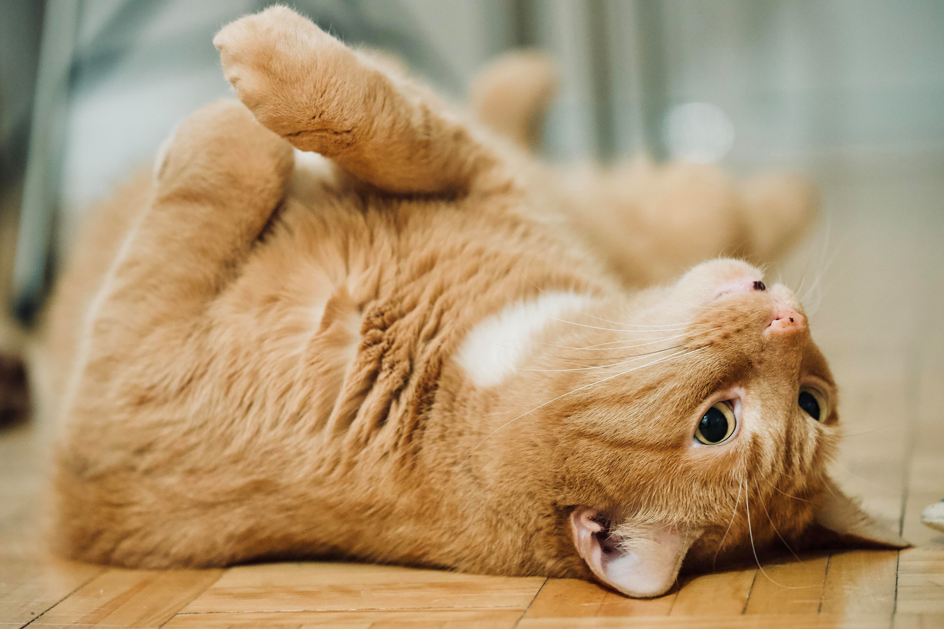 Wallpaper Beautiful domestic ginger cat lies on the floor