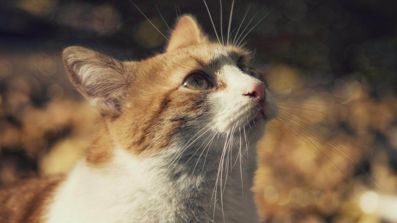 Wallpaper Red and white cat looks up