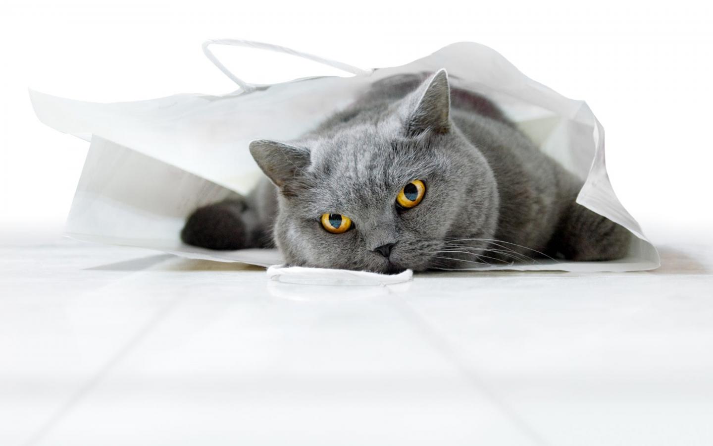 Wallpaper British cat lies in a white bag
