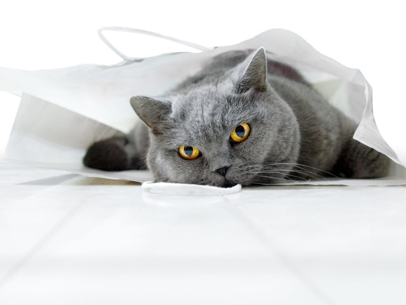 Wallpaper British cat lies in a white bag