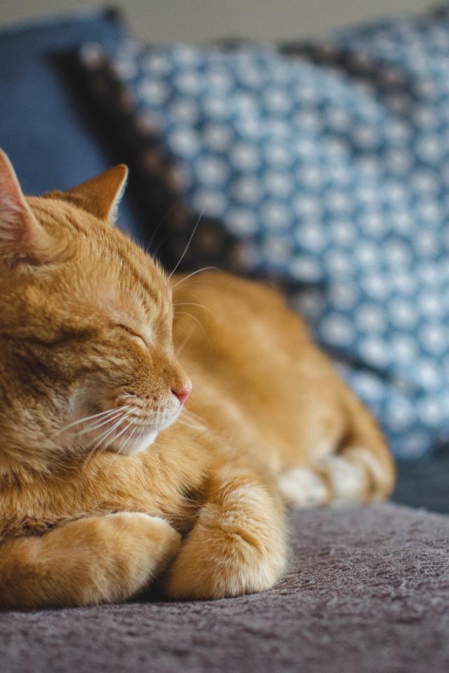 Wallpaper Big ginger cat sleeping on the couch
